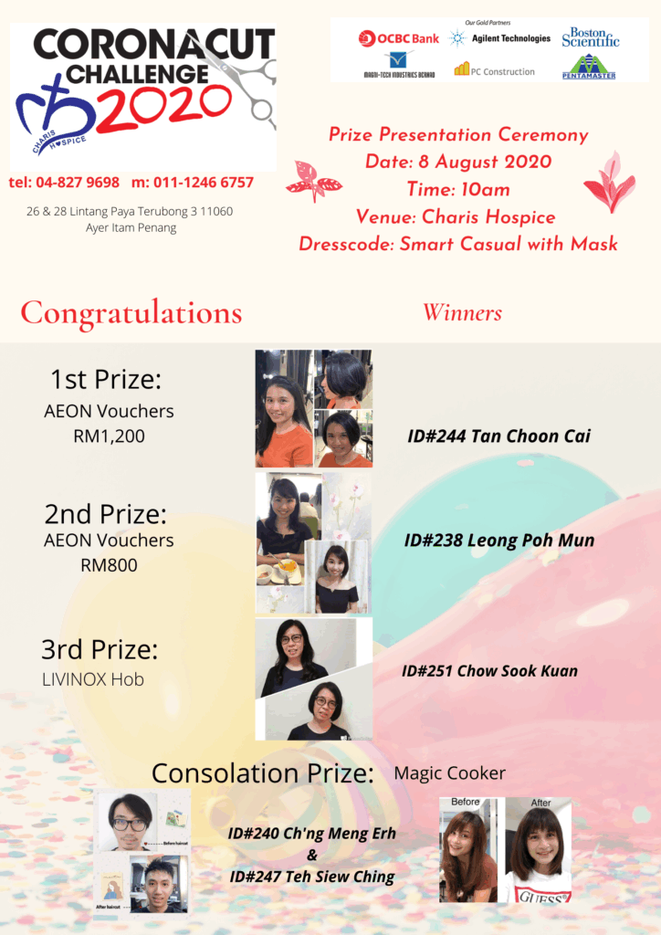 During the CMCO phase, our community rose to the occasion, to opt for a DIY hair cut challenge from home. The enthusiasm shown by our friends and supporters not only provided vital support for Charis Hospice but also brought joy and laughter as participants shared their transformed looks online.